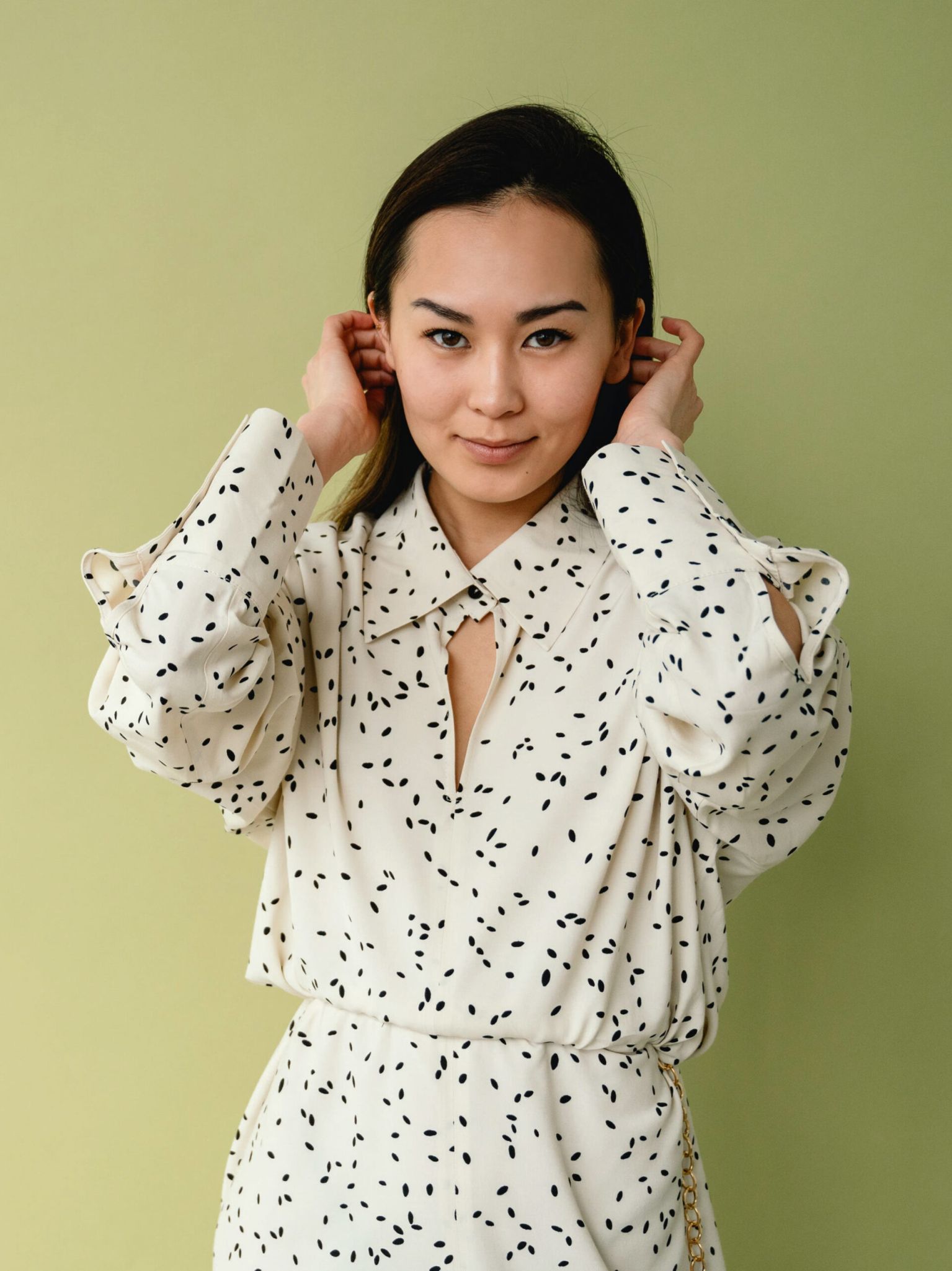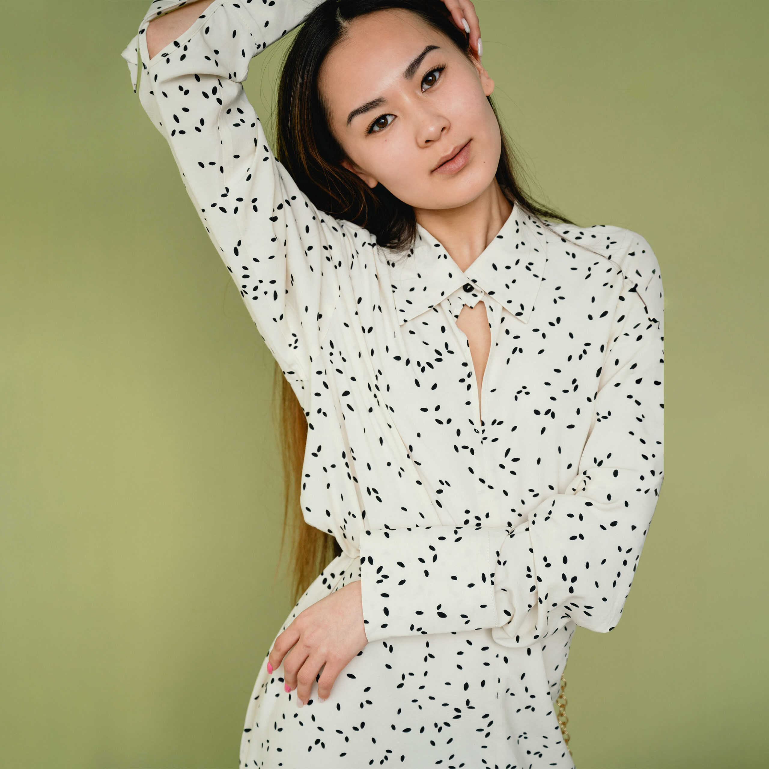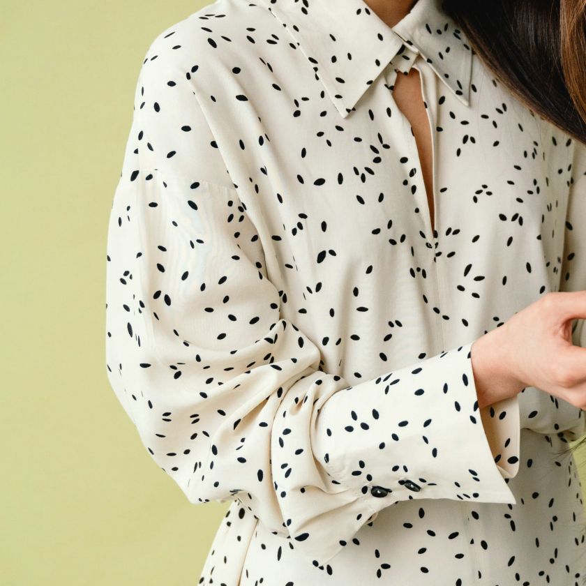 Dotted Long-Sleeve Blouse