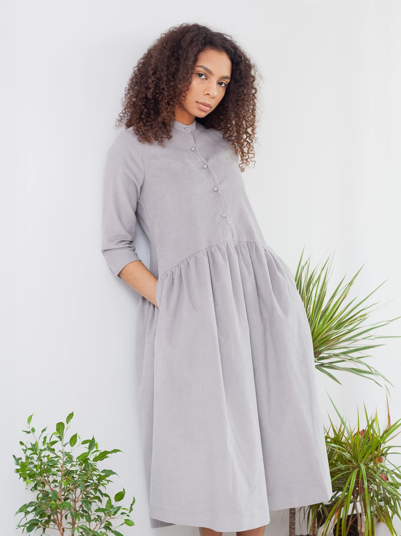 Long-Sleeve Corduroy Dress
